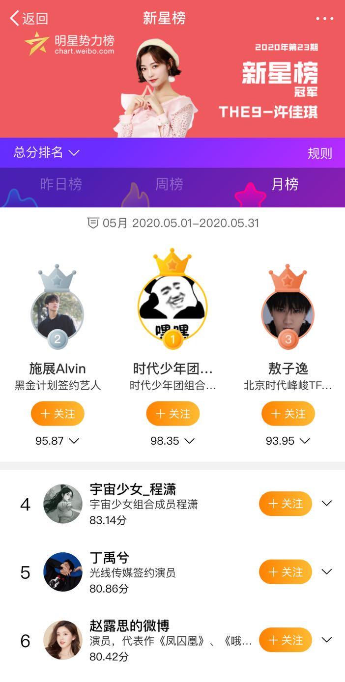 不过丁禹兮做不到像肖战那样,《陈情令》播出后从去年七月份开始一直占据内地明星势力榜冠军,而且一直都是冠军,这才是标准的顶流人气。