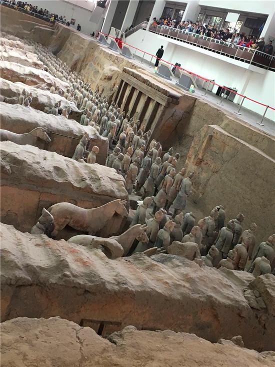 没有必要在网上订讲解,在车上订官方讲解就可以,性价比最高,而且是官方认证的,只需要八元。从景区大门进入沿着步道走一段时间就到达兵马俑坑,建议从一号坑,按照一号、二号、三号安排看,一号坑能看到挖掘的比较完全的兵马俑,二号坑都是一些未修复完整的残次品,三号坑大部分未挖掘出来,可以看见用VR技术还原的坑内景观,游览兵马俑的时候要注意随身携带的物品。当讲解带你去2号坑2楼时,您可以根据自身情况选择去或者不去,这就到了旅途的终点,2楼是卖蓝田玉的,这就体现出个人旅游的好处,对蓝田玉没有兴趣的朋友可以自行撤退了,在走之前记得退还讲解机器。