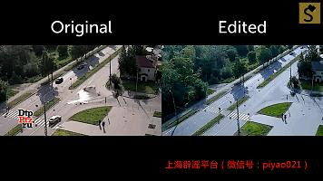 左图原视频中马路对面的车辆,在右图中不复存在。
